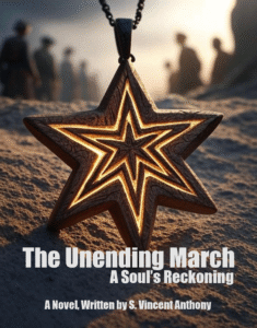 Picture a saga that begins at the very dawn of humanity, with Harlan Voss standing in the shadow of a radiant tree, watching Adam and Eve make their fateful choice, the star pendant in his hand pulsing with a light older than time itself. That’s where “The Unending March: A Soul’s Reckoning“—a raw, sweeping tale of Harlan’s soul, reborn through the blood and fire of every human struggle, from primal clashes in forgotten valleys to the brutal wars of Jamestown, Gettysburg, and a chilling 2025 cyber crisis where rogue AI threatens to unravel reality. Each life scars him with guilt, the pendant’s glow a haunting reminder of his vow to witness and atone for humanity’s violence.